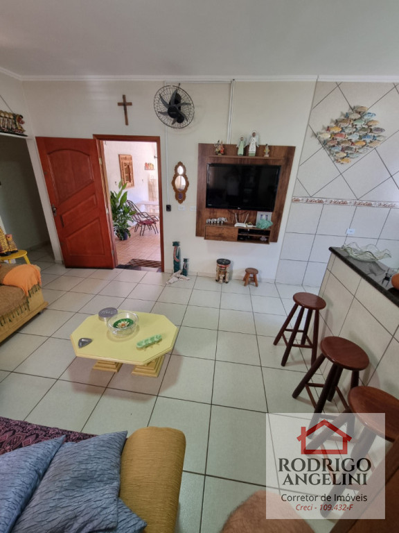 - Sala de estar integrada à cozinha, com balcão em mármore